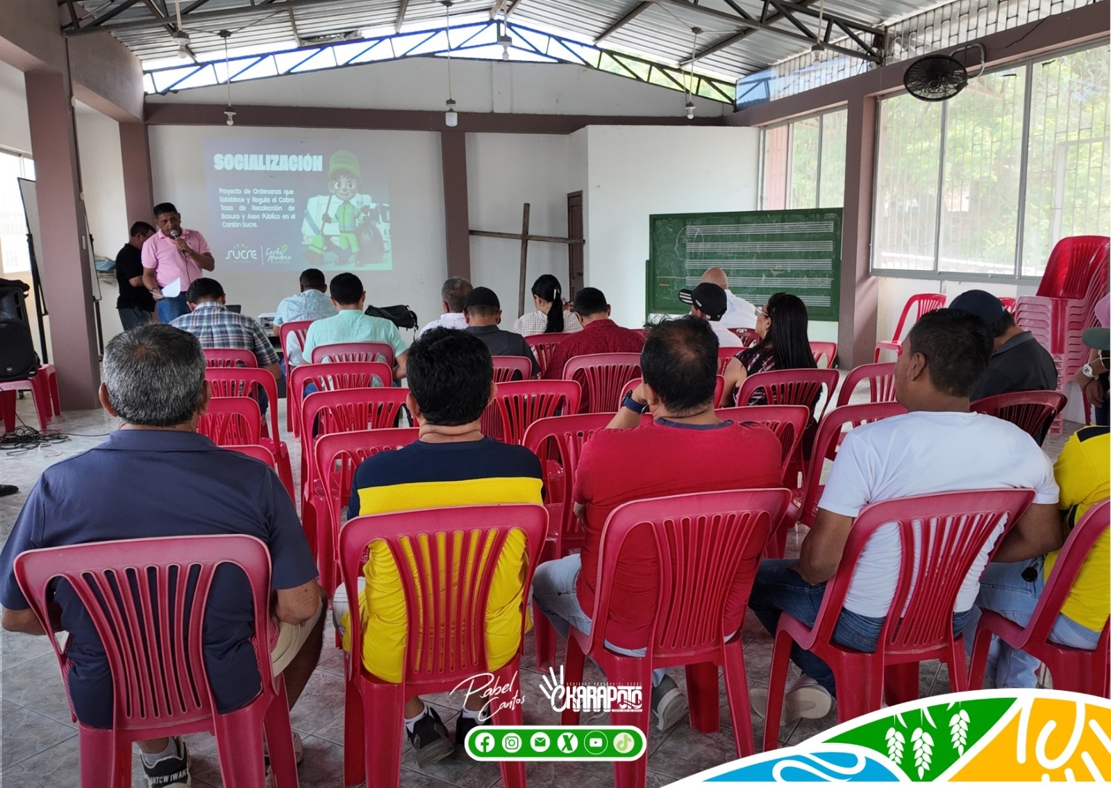El Ing. Ariel Mero, vocal principal del GAD Parroquial de Charapotó, junto al vocal suplente Sr. Lluber Demera, asistieron a la socialización del proyecto de ordenanza que establece y regula el cobro de la tasa de recolección de basura y aseo público en el cantón Sucre.